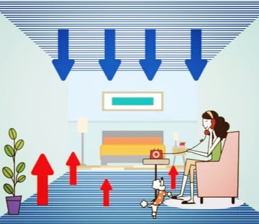 The water circulating through the capillary tubes exchanges heat with the air, providing a smooth and efficient temperature control, much like the natural process of temperature regulation.