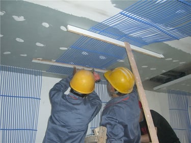 Sinolanc capillary tube mats with plaster ceilings are popular because of their simple appearance and installation. The capillary tube mats are plastered directly underneath a concrete ceiling, which invisibly integrated into the ceiling not only provide excellent cooling in the summer, but can also be used to heat comfortably and energy-efficient. The renovation of plaster ceilings does not require much effort.